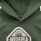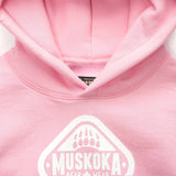 Get cozy in this super-soft, signature Muskoka Youth Hoody! This style is made of 80% cotton, 20% polyester, 16 oz. fleece durable fabric washed for shrinkage control. Complete with double lined Hood, front pouch pockets & custom signature logo on the front & paw patch on the hood.