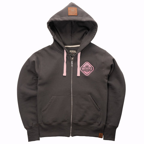 Ladies Classic Hoody in Dark Charcoal with Pink