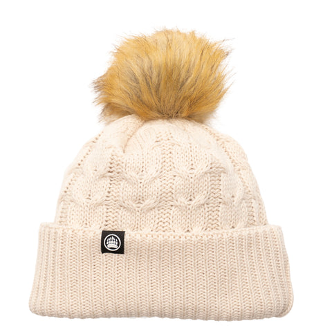 Ladies Double Cuffed Thick Toque (Faux-Fur Pom)